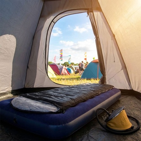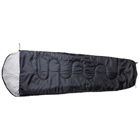 Med en sovepose kan du udnytte den friske luft under åben himmel og holde dig varm om natten. Den er velegnet til udendørs brug når du skal sove i telt eller shelter. Den er fremstillet af 100% polyester – den er farvet i sort og grå – og har en vægt på 1,4 kg. Derudover er komfort temperatur på +12°C / +8°C – denne sovepose er derfor velegnet i sommerhalvåret. Der medfølger bæretaske, så den kan foldes sammen – derved er den nem at have med på farten når du skal på camping, på telttur, i shelter eller andet. Soveposen måler L: 220 cm x B: 75/50 cm.