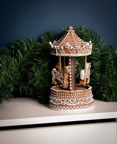 Hvis du elsker juletiden og gerne vil skabe et hyggeligt juleunivers, så kan du tilføje denne super-fine spilledåse, der har et design som en karrusel. Den har fine, dekorative detaljer, som er med til at tilføje et eventyrligt julelandskab og sprede julestemning. Produktet kan trækkes op og så spiller den en melodi. Spilledåsen måler Ø: 11,5 cm x H: 21,5 cm.