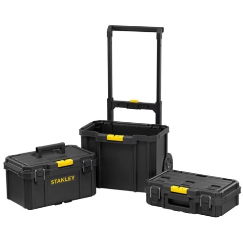 Stanley Modular værktøjsopbevaring på hjul har yderligere den fordel, at det er en 3-i-1-løsning med 3 separate værktøjskasser, som nemt og hurtigt kan sammenkobles og frakobles. Der er en stor og dyb kasse, som er oplagt til opbevaring af el-værktøj. Derudover er der en mellemstor værktøjskasse, som er ideel til opbevaring af håndværktøj. Samtidig er der en mindre værktøjskasse, som er god til opbevaring af smådele og tilbehør.