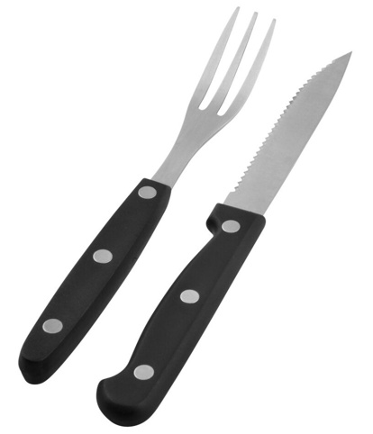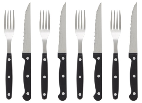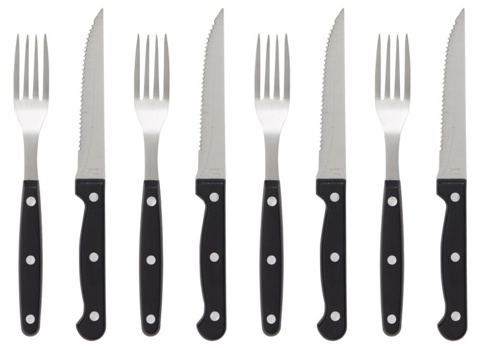 Dette steakbestiksæt indeholder 4 steakgafler og 4 steakknive, som gør det nemt at skære igennem et ethvert stykke kød. Bestiksættet er fremstillet af sorte greb, og det tåler opvaskemaskine.