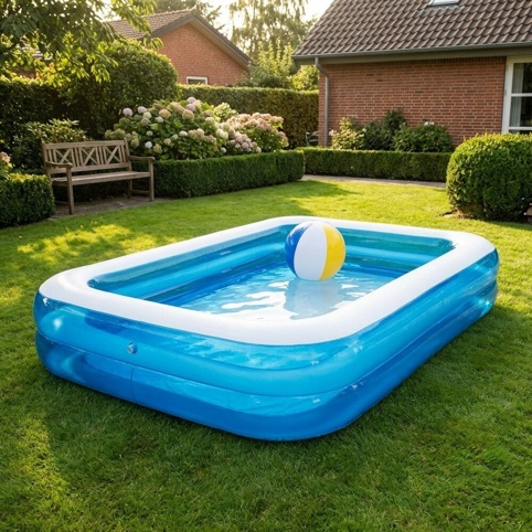 Sommerens varme dage kalder på en pool hjemme i haven. Med denne SunClub-pool får du en oppustelig og rektangulær model, som kan rumme hele 778 liter kølende vand at boltre sig i. Poolen måler 262 cm i længden, 175 cm i bredden og 50 cm i højden.