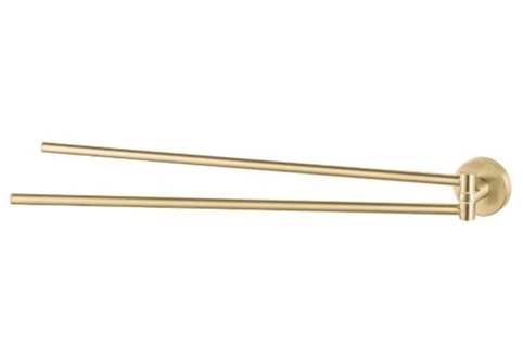 Med denne elegante håndklædestang i børstet guld får du et dekorativt og funktionelt element på badeværelset. Den flotte guldfarve er med til at skabe et eksklusivt look. Kosmos-håndklædestangen er dobbelt og har 2 stænger – du kan derfor opbevare og tørre flere håndklæder på samme tid. Derudover er håndklædestangen svingbar, så du kan bruge og bevæge den efter behov.