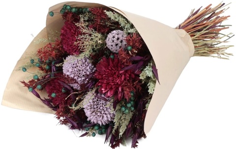 Tilføj et strejf af tidløs elegance til dit hjem med vores smukke tørrede buket i varme nuancer af bordeaux og rosa farver. De dybe, rige farver skaber en varm og indbydende atmosfære, mens de bløde rosa toner tilfører et let og romantisk udtryk. Buketten er perfekt som gave til værtinden, veninden eller dig selv. Den er langtidsholdbar og kræver ingen vanding eller pasning.