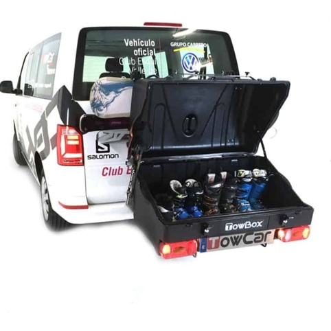 Med Towbox anhængerboks får du et produkt, som kan bruges til ekstra opbevaring, når du skal på ferie. Hvis ikke i gider have bilen fyldt med opbakning kan I anvende den og få mere plads i bilen – dens åbning er på hele 75 cm. Den kan monteres uden værktøj. OBS! Husk du skal bestille ekstra nummerplade ved brug af denne anhængerboks.