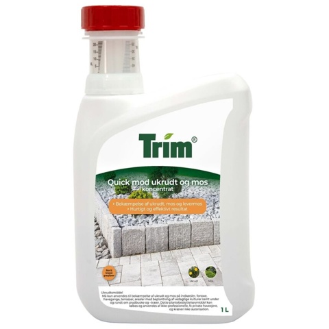 Dette produkt hjælper dig effektivt med at bekæmpe både ukrudt, mos og levermos. Det er kun egnet til brug i indkørsler samt på fortove, havegange, terrasser og arealer med beplantning. Du vil opleve et resultat inden for 3 timer, og det er modstandsdygtig over for regn allerede inden for 1 time efter påføring. Du skal blande produktet op med vand – vær opmærksom på, at rækkeevnen på 83 m² er 1 L koncentrat. OBS! Ikke til brug på græsplæner.