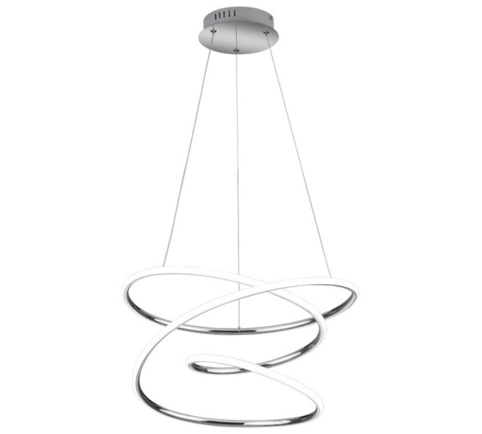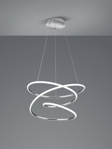 <h2>Moderne og stilren pendel til moderne indretninger</h2><p>Denne stilrene Bologna-pendel fra Trio Lighting har en markant, organisk snoet form, der skaber dekorative lyslinjer i rummet og giver et moderne, eksklusivt udtryk over spisebordet eller i opholdsrummet. Lampen har en smart dæmpbar funktion, som gør, at du kan dæmpe lyset i 3 niveauer via en traditionel lyskontakt i 25 %, 50 % og 100 % lysstyrke, så du kan justere lyset efter behov.<br><br>Den kolde hvide LED-belysning har en lysfarve på 4000 Kelvin og en lysstyrke på 5100 lumen, som giver et godt og kraftigt lys, der er ideelt til at oplyse området, hvori den er placeret. OBS! Dette produkt indeholder LED-lyskilde, som ikke kan udskiftes.</p>