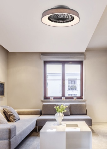 Med denne Farsund-loftslampe fra Trio Lighting med indbygget ventilator får du en stilren, moderne lampe med et blødt, rundt design, som vil passe flot ind i enkle, moderne og stilrene indretninger. Med fjernbetjeningen (inkl.) kan du trinløst justere både lysstyrke og lysfarve, så det tilpasses efter stemning og aktivitet. Ventilatoren har 3 hastighedsniveauer samt sommer- og vinterdrift, som er med til at sikre optimal luftcirkulation året rundt. Derudover har lampen også en praktisk timerfunktion og mulighed for at tænde/slukke ventilator og lys separat.