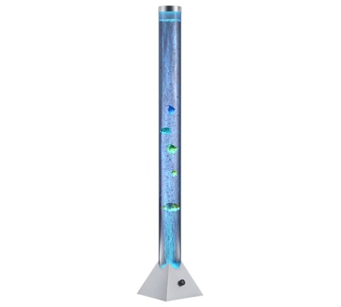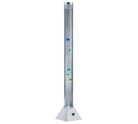 Med denne fine Motion-gulvlampe fra Trio Lightning kan du tilføje et sjovt og anderledes element til børneværelset eller andre steder i hjemmet, hvor den vil passe ind. Med et cylinderformet design med små fisk, som flyder rundt i cylinderen, tilføjer den et dekorativt og kreativt udtryk til rummet, og den er ideel som hyggelig belysning, når mørket falder på. Lampen tændes og slukkes via afbryder-knappen på lampen.