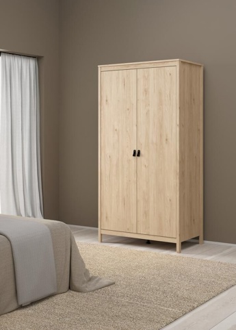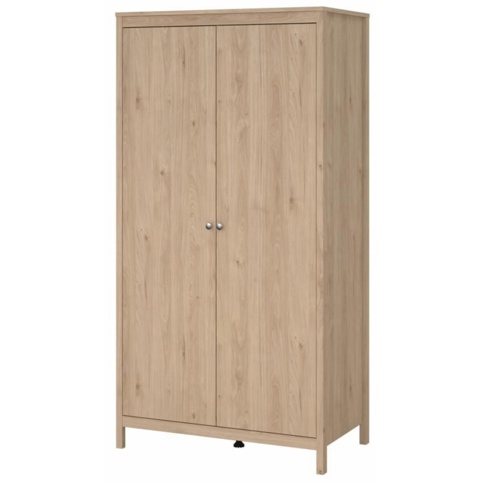 Dette garderobeskab fra Madrid-serien giver dig både praktisk opbevaring og et roligt, moderne udtryk i rummet. Designet er enkelt og elegant, så det passer ind i de fleste indretninger – uanset om du er mere til det minimalistiske eller det mere klassiske look. Samtidig medfølger der 2 forskellige greb til møblet, så du kan vælge det look, der passer bedst ind i dit hjem.