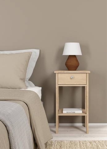 Dette natbord fra Madrid-serien giver dig både praktisk opbevaring og et roligt, moderne udtryk i soveværelset. Designet er enkelt og elegant, så det passer ind i de fleste indretninger – uanset om du er mere til det minimalistiske eller det mere klassiske look. Samtidig medfølger der 2 forskellige greb til møblet, så du kan vælge det look, der passer bedst ind i dit hjem.