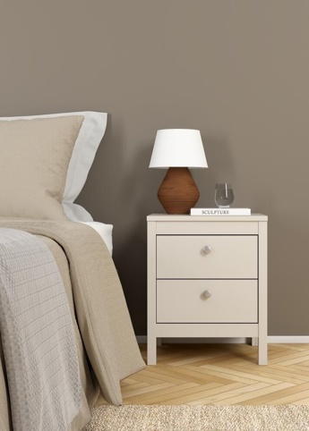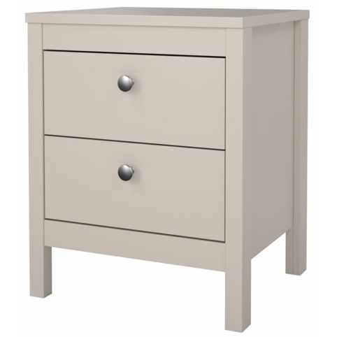 Dette natbord fra Madrid-serien giver dig både praktisk opbevaring og et roligt, moderne udtryk i soveværelset. Designet er enkelt og elegant, så det passer ind i de fleste indretninger – uanset om du er mere til det minimalistiske eller det mere klassiske look. Samtidig medfølger der 2 forskellige greb til møblet, så du kan vælge det look, der passer bedst ind i dit hjem. Natbordet har 2 skuffer for nem opbevaring af bøger, briller og andre småting, du gerne vil have lige ved hånden. Det har en bredde på 43,8 cm, en dybde på 38,4 cm og en højde på 54,1 cm.
