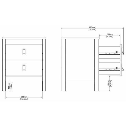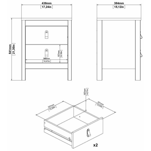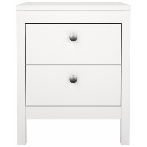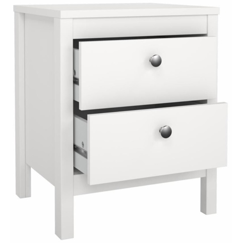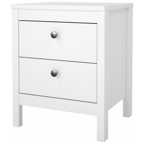 Dette natbord fra Madrid-serien giver dig både praktisk opbevaring og et roligt, moderne udtryk i soveværelset. Designet er enkelt og elegant, så det passer ind i de fleste indretninger – uanset om du er mere til det minimalistiske eller det mere klassiske look. Samtidig medfølger der 2 forskellige greb til møblet, så du kan vælge det look, der passer bedst ind i dit hjem. Natbordet har 2 skuffer for nem opbevaring af bøger, briller og andre småting, du gerne vil have lige ved hånden. Det har en bredde på 43,8 cm, en dybde på 38,4 cm og en højde på 54,1 cm.