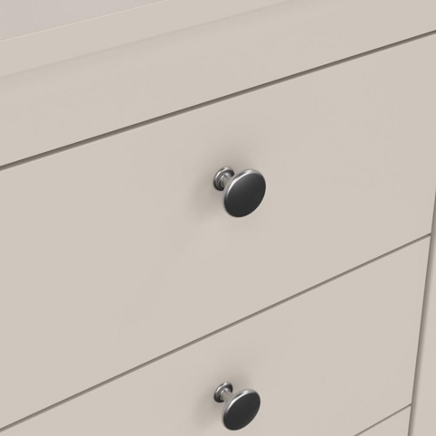 Dette natbord fra Madrid-serien giver dig både praktisk opbevaring og et roligt, moderne udtryk i soveværelset. Designet er enkelt og elegant, så det passer ind i de fleste indretninger – uanset om du er mere til det minimalistiske eller det mere klassiske look. Samtidig medfølger der 2 forskellige greb til møblet, så du kan vælge det look, der passer bedst ind i dit hjem.