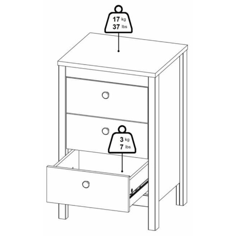 Natbordet har 3 skuffer for nem opbevaring af bøger, briller og andre småting, du gerne vil have lige ved hånden. Det har en bredde på 43,8 cm, en dybde på 38,4 cm og en højde på 70,1 cm.