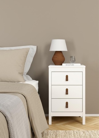 Dette natbord fra Madrid-serien giver dig både praktisk opbevaring og et roligt, moderne udtryk i soveværelset. Designet er enkelt og elegant, så det passer ind i de fleste indretninger – uanset om du er mere til det minimalistiske eller det mere klassiske look. Samtidig medfølger der 2 forskellige greb til møblet, så du kan vælge det look, der passer bedst ind i dit hjem.