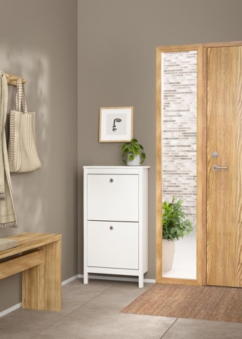 Dette skoskab fra Madrid-serien giver dig både praktisk opbevaring og et roligt, moderne udtryk i rummet. Designet er enkelt og elegant, så det passer ind i de fleste indretninger – uanset om du er mere til det minimalistiske eller det mere klassiske look. Samtidig medfølger der 2 forskellige greb til møblet, så du kan vælge det look, der passer bedst ind i dit hjem.