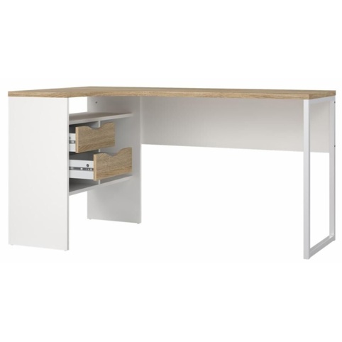 Et godt skrivebord gør det nemmere at få styr på både arbejde, lektier og kreative projekter. Denne model fra Tvilums Function Plus-serie giver dig en praktisk arbejdsplads med god bordplads og opbevaring. De 2 skuffer kan bruges til alt fra notesbøger og papirer til opladere og småting, mens hylderne er perfekte til at stille mapper, bøger og opbevaringskasser, så du altid har de vigtigste ting indenfor rækkevidde. Skrivebordet har en kompakt størrelse og et enkelt, moderne design, der gør det nem at indrette med. Stel og hylder er hvide, mens bordpladen og skuffefronterne har et egetræslook. Bordet har en bredde på 145,1 cm, en dybde på 81 cm og en højde på 76,8 cm. Det leveres usamlet.