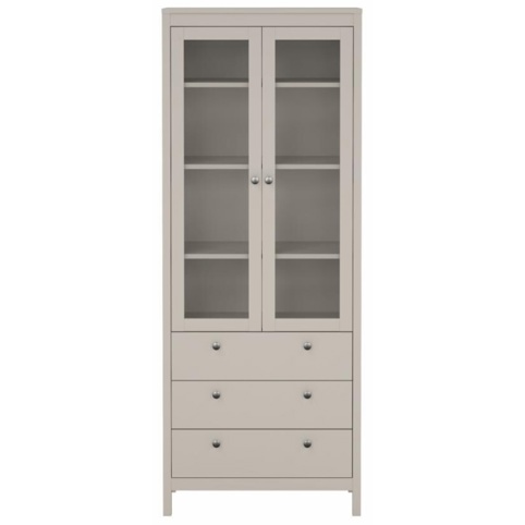 Elegant Madrid-vitrineskab med 2 glaslåger og 3 skuffer