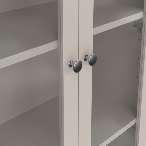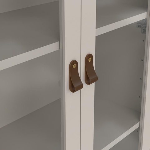 Dette vitrineskab fra Madrid-serien giver dig både praktisk opbevaring og et roligt, moderne udtryk i rummet. Designet er enkelt og elegant, så det passer ind i de fleste indretninger – uanset om du er mere til det minimalistiske eller det mere klassiske look. Samtidig medfølger der 2 forskellige greb til møblet, så du kan vælge det look, der passer bedst ind i dit hjem.