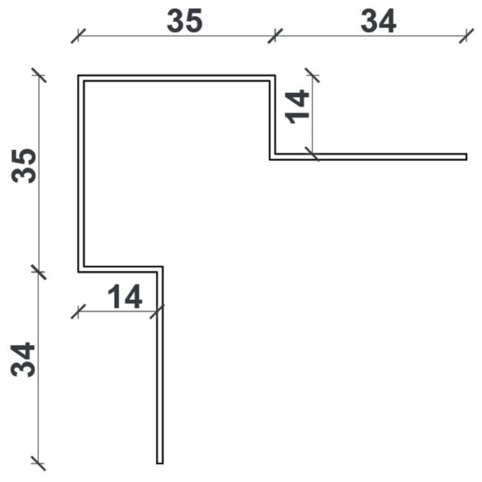 Symmetrisk hjørneprofil til udvendige kanter – 14x14 mm