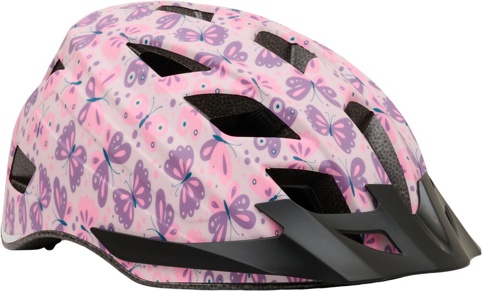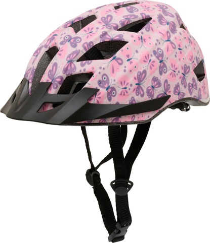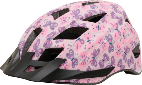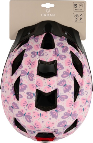 Urban cykelhjelmen til børn har en klassisk udformning med god ventilation. Denne model er med praktisk skygge foran, som kan tages af, hvis dit barn foretrækker en skyggefri cykelhjelm. Den er desuden forsynet med rødt LED-lys bagpå, som gør det nemmere at se barnet, når det er mørkt udenfor. Cykelhjelmen er lyserød og har et fint sommerfugleprint.
