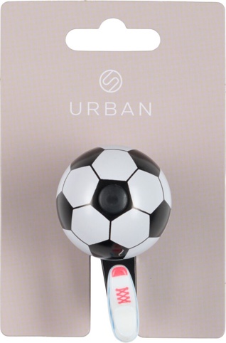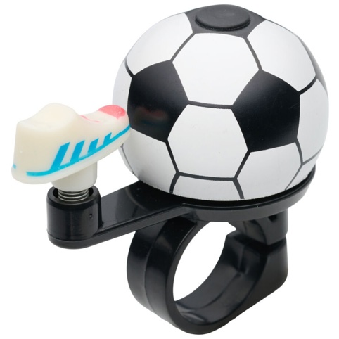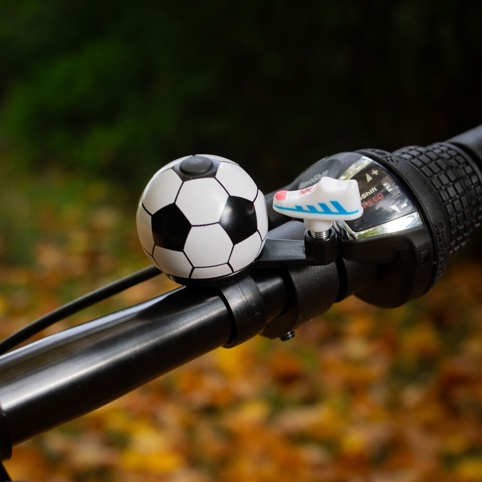 Her er den helt perfekte ringeklokke til alle fodboldfans. Ringeklokken er nemlig formet som en fodbold med en lille fodboldstøvle på fjederen – så kan du sparke til bolden, hver gang du ringer med ringeklokken. Ringeklokken har en diameter på 40 mm og har et universal-beslag, der gør den nem og hurtig at montere på stort set alle cykler.