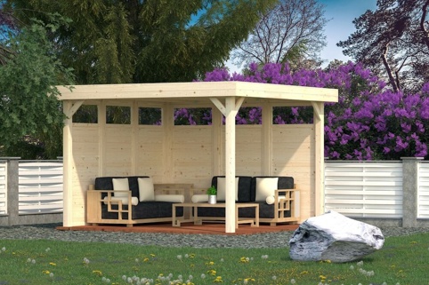Elementet er fremstillet af ubehandlet nordisk gran, og derfor bør du inden montering og med jævne mellemrum give træet en passende træbeskyttelse for at beskytte mod fugt og svamp. Hvis du vil male pavillonen i en bestemt farve, kan du også give den maling. Hvert element måler B: 103 x H: 230 cm, hvor vinduet består af 4 mm ægte glas.
