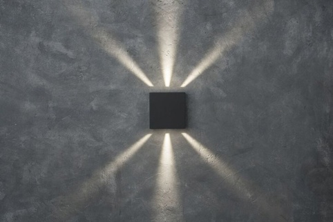 Er du på udkig efter udendørs belysning? Så finder du denne Gemini Beams væglampe i mørkegrå, som har et firkantet design. Væglampen er vejrbestandig og kan give op- og nedadrettet lys i en vinkel på 138°. Den har justerbare lysstråler, som vha. den indbyggede mekaniske ring kan justeres i 4 forskellige mønstre. Disse vil skabe smukke lysmønstre på dine ydervægge. Lampen har en indbygget 7,5 W LED-lyskilde.