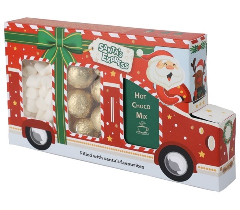 En festlig gaveæske udformet som julemandens lastbil, der er fyldt med hans favoritter – og den indeholder alt, hvad du behøver til en hyggestund i julen. Med sit farverige design og gennemsigtige vinduer er æsken ikke kun lækker indeni – den pynter også i hjemmet. Perfekt som pakkelegsgaver, kalenderpakke eller bare lidt ekstra hygge til vinteraftener.