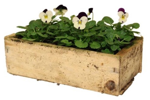 Smukke viola i trækasse, som giver et tæt, farverigt udtryk og passer smukt ved indgangen, på altanen eller terrassen. Viola blomstrer rigt i kølige temperaturer og sætter nye knopper løbende, så kassen fremstår frisk i lang tid. Nipper du visne hoveder af, kommer der hurtigt en ny blomsterbølge. Lad det øverste jordlag tørre let op mellem vandinger, og undgå stående vand i kassen. En let gødning f.eks. hver 2.–3. uge i sæsonen forlænger blomstringen.
