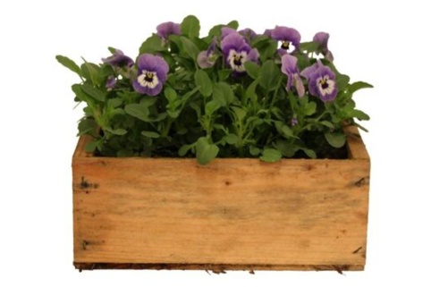 Smukke viola i trækasse, som giver et tæt, farverigt udtryk og passer smukt ved indgangen, på altanen eller terrassen. Viola blomstrer rigt i kølige temperaturer og sætter nye knopper løbende, så kassen fremstår frisk i lang tid. Nipper du visne hoveder af, kommer der hurtigt en ny blomsterbølge. Lad det øverste jordlag tørre let op mellem vandinger, og undgå stående vand i kassen. En let gødning f.eks. hver 2.–3. uge i sæsonen forlænger blomstringen.