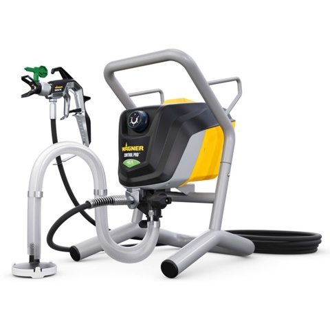 En airless-malersprøjte som denne fungerer ved at sprøjte malingen direkte ud med højt tryk – helt uden brug af luft. Det giver en meget jævn fordeling af malingen og gør det muligt at dække store flader langt hurtigere end med pensel og rulle. Samtidig trænger malingen godt ind i overfladen, hvilket giver et flot og ensartet resultat med færre overgange.