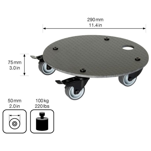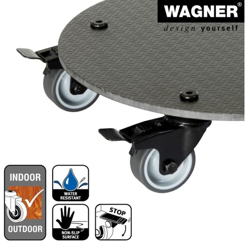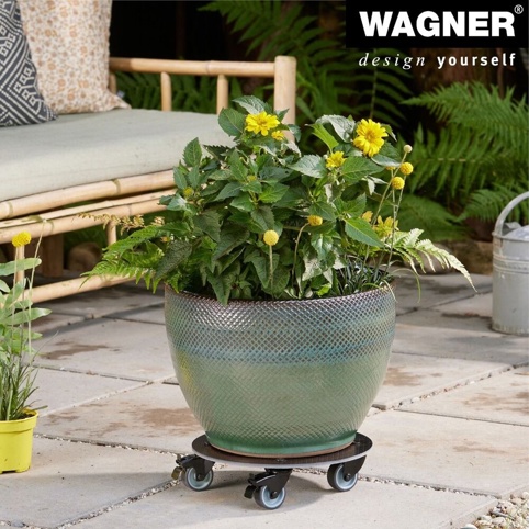 Dette Wagner rullebræt og de fire kraftige udstyrshjul gør det let at flytte krukker og plantepotter på op til 100 kg, og de bløde hjul er skånsomme mod følsomme gulvbelægninger som parket og laminat. To af hjulene har låsebremser, så vognen står stabilt, når den er placeret. Produktet må ikke udsættes for permanent fugtighed. Denne plantevogn er ikke designet til transport af personer.