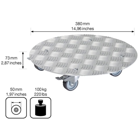Rullebrættet er fremstillet af massiv, rustfri og savtakket aluminium. Den ribbede overflade giver et ekstra sikkerhedsplus, da den hjælper med at forhindre tunge plantepotter i at glide eller falde ned under transport – det tåler ikke at blive udsat for permanent fugtighed.