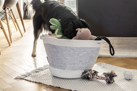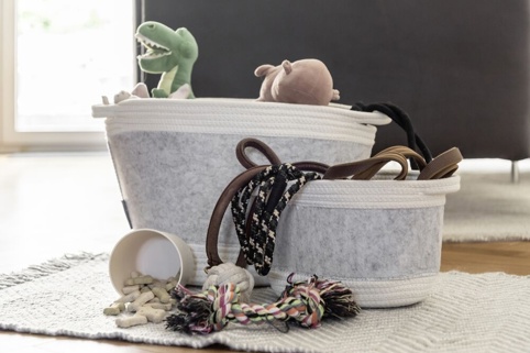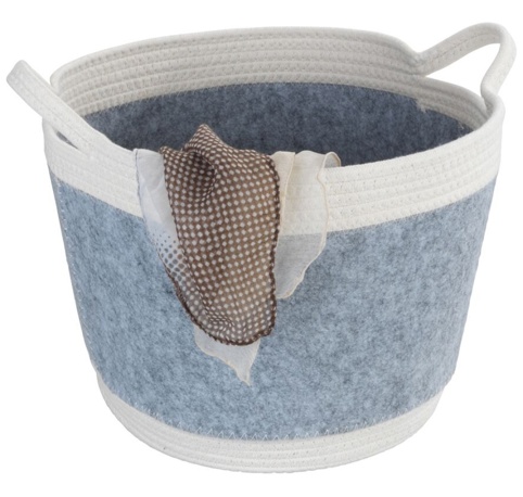 Hvis du gerne vil have en simpel vasketøjskurv, så kan du her finde denne super-fine kurv, som er fremstillet af 80 % polyester og 20 % bomuld. Vasketøjskurven har et flot vævet design. Du kan med fordel tilføje den på badeværelset eller soveværelset – eller du kan bruge den til opbevaring af tæpper i stuen.