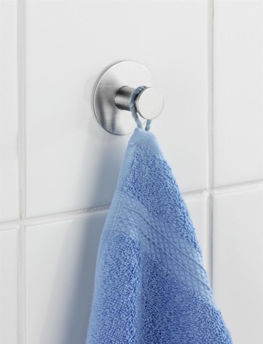 Denne fine og diskrete krog kan anvendes flere steder i hjemmet – brug den f.eks. til små viskestykker, håndklæder, badekåber m.m. Det er nemt at montere krogen – fjern blot beskyttelsesfilmen og klæb krogen fast på den ønskede overflade. Krogen kan fjernes igen uden at efterlade mærker på overfladen. Dimensionerne på krogen er Ø: 5 cm x H: 3,3 cm, og den er fremstillet af rustfrit stål. Krogen har et mat stållook.