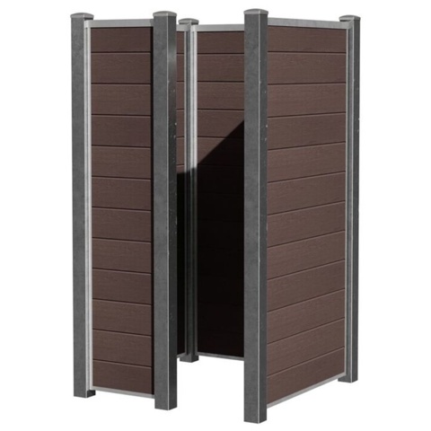 Denne model er høj, halvåben og har en V-profil, der betyder, at den har 4 sider med vandrette brædder fra bund til top, der sidder tæt op og ned ad hinanden. Det giver fornemmelsen af, at du kan stå diskret og ugeneret, når du skal benytte udebruseren. Der medfølger desuden 5 stolper til opsætning.