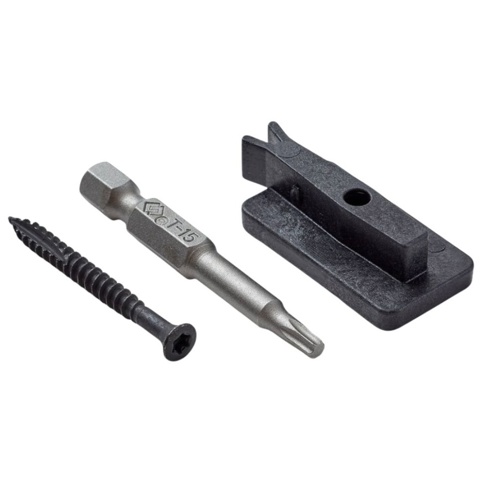 Fastgør bort-clipsene til underkonstruktionen og placér Fur Royal terrassebrædderne i clipsene, hvilket skaber en ensartet afstand mellem brædderne og en skjult fastgørelse. Den ensartet afstand mellem plankerne er med til at fremme god luftcirkulation. Du får et komplet sæt med clips med skruer og 1 x TX15- bits.