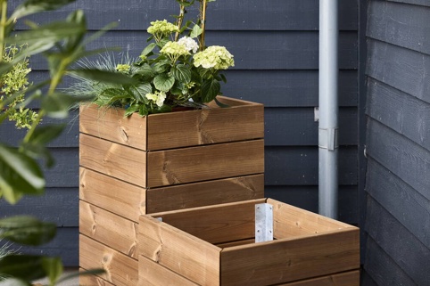 Du kan bl.a. bruge plantekassen kreativt i kombination med andre kasser i forskellige størrelser til at opbygge struktur og liv til uderummet. Den er perfekt til både nybegyndere og erfarne havemennesker. Gør plantekassen mere mobil og flytbar ved at tilkøbe hjul.