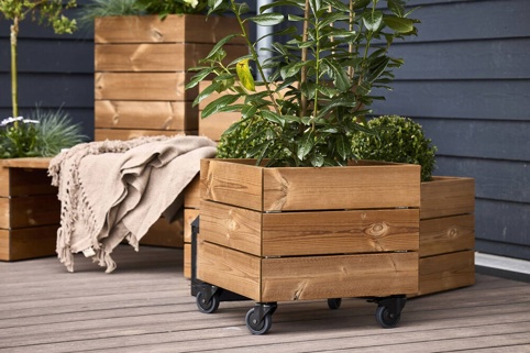 Du kan bl.a. bruge plantekassen kreativt i kombination med andre kasser i forskellige størrelser til at opbygge struktur og liv til uderummet. Den er perfekt til både nybegyndere og erfarne havemennesker. Gør plantekassen mere mobil og flytbar ved at tilkøbe hjul.
