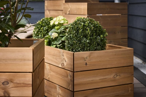 Du kan bl.a. bruge plantekassen kreativt i kombination med andre kasser i forskellige størrelser til at opbygge struktur og liv til uderummet. Den er perfekt til både nybegyndere og erfarne havemennesker. Gør plantekassen mere mobil og flytbar ved at tilkøbe hjul.