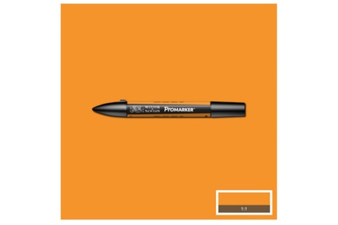 Winsor & Newton’s Promarkere består af et stort udvalg af permanente, alkoholbaserede blækfarver til kunst- og hobbybrug. Farverne giver et ensartet resultat uden at efterlade striber. Dækningen er gennemskinnelig, som gør det muligt at skabe alt fra subtile nuancer til dramatiske farvelag. Denne marker er i farven Amber O567, som er en orange nuance i en mellemtone og med en gylden glans.