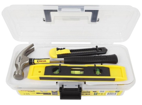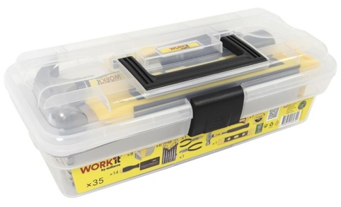 Starter du helt fra bunden, eller kender du en, der skal flytte i egen bolig, er dette værktøjssæt helt genialt. Her får du nemlig det nødvendige basisværktøj, som dækker mange forskellige behov i boligen. Hele sættet leveres i en praktisk, transparent værktøjskasse i kraftigt plast, så det er nemt at holde styr på, og du hurtigt kan finde det, du skal bruge.