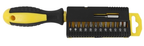 - 12 × bits: PZ1/PZ2/PZ3, T15/T20/T25, SL3,0/SL4,0/SL5,0 og HX3/HX4/HX5