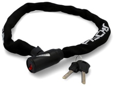 - Kædelås: Kædelåsen er egentligt mere beregnet til scootere. Kædelåse er store, tunge og robuste, og derfor bliver de brugt til de lidt tungere køretøjer. Du kan selvfølgelig stadig bruge det til din cykel, og der findes også mindre kædelåse, som er nemmere at have med til din cykel.