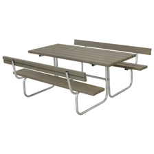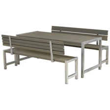 Du kender helt sikkert bord-/bænkesættet fra skovturen, rastepladserne eller et andet offentligt sted. Det smarte udendørs møbelsæt har været mødepunkt for mange gode stunder og kan sagtens bruges til private anledninger. Bord-bænkesættet er for dig der gerne vil nyde din madpakke i det fri, holde fest i haven eller bare tage en velfortjent pause samtidig med, at du nyder den friske luft. Det kan også være et samlingspunkt for nabolaget med fælles legeplads. Derudover er møbelsættet en god praktisk løsning til arbejdspladser, kollegier og institutioner. Bord-bænkesættet er nemlig velegnede til at stå udendørs det meste af året, og det er robust overfor daglig anvendelse.