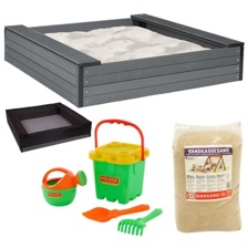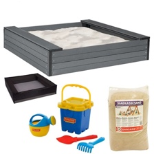 Vil du gerne slippe for at købe tilbehør og sand til sandkassen, kan du købe en samlet pakke, hvor du får sand og tilbehør med i købet af sandkassen. Det smarte ved at købe en sandkasse, hvor der i forvejen medfølger sand, legetøj og andet tilbehør, er, at du får den mængde sand og legetøj, som du har behov for. Ud over sand og legetøj kan du også købe en sandkasse med bord-/bænkesæt og sandkassenet. Se i de forskellige samlede pakker med sandkasser og tilbehør for at finde den sandkasse og det tilbehør, som passer til dine behov.